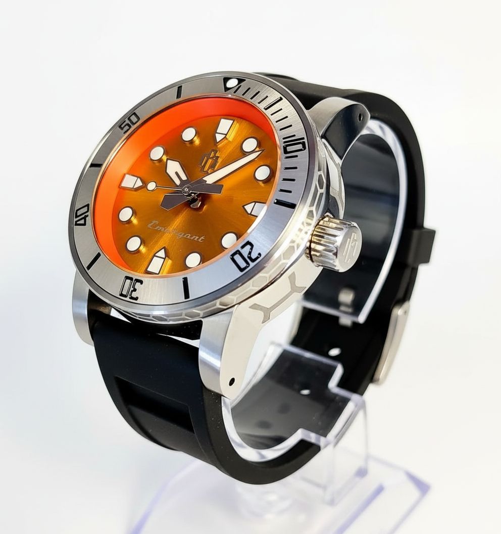 Introducing the Emergent —a timepiece that rises above the ordinary and demands attention with every glance. Its powerful 48mm lug-to-lug and commanding 43.5mm width make a bold statement, while the 15mm thickness gives it a solid, unwavering presence on the wrist. At just 92 grams (minus strap), it combines strength with comfort, crafted for those who know that precision and style should never be compromised.