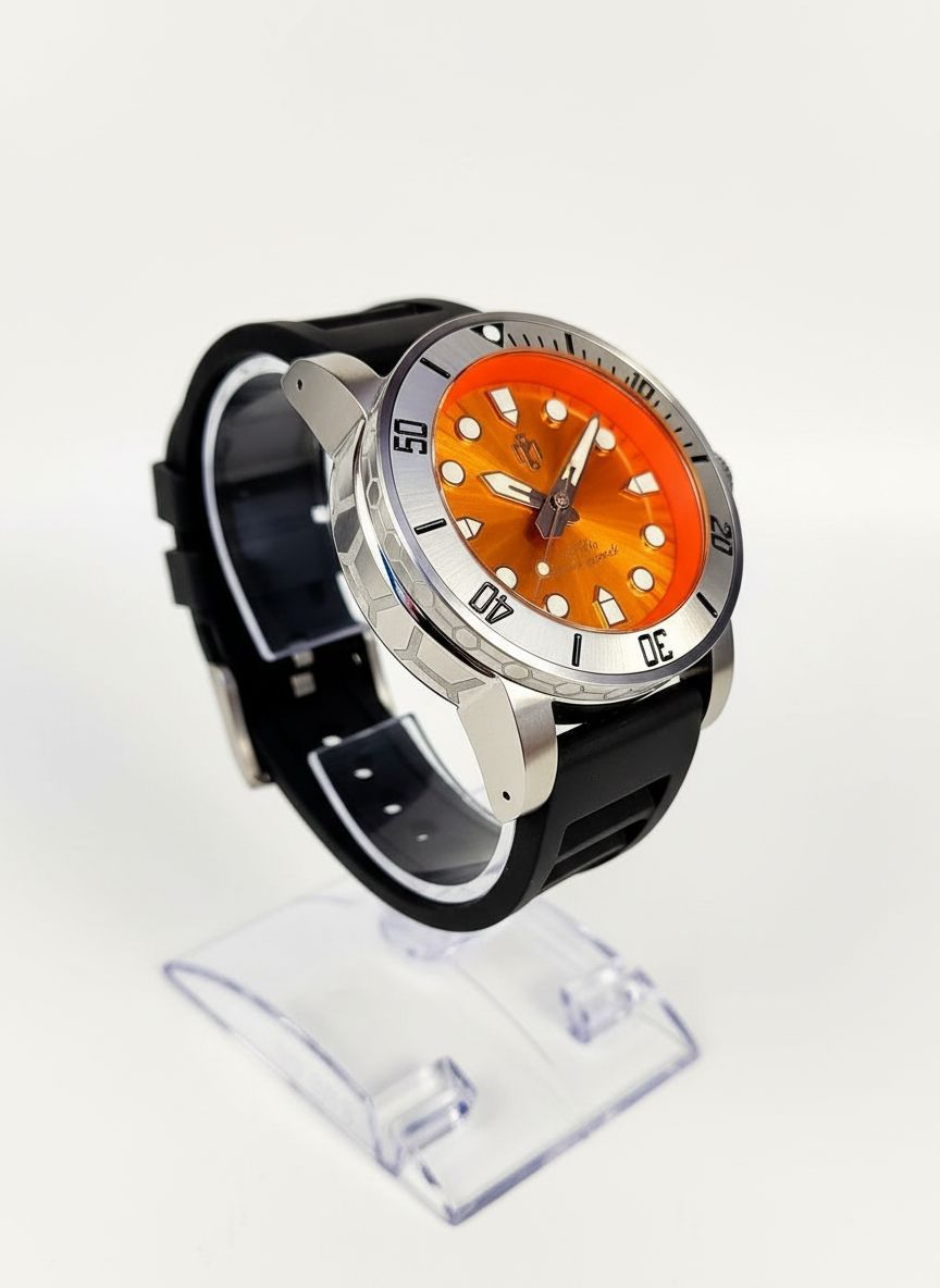 Inside, the Emergent beats with purpose, powered by the NH38 automatic movement. With a steady 21,600 bph and hacking seconds, it delivers unwavering accuracy, while the 28.5mm hand-painted dial with BGW9 Swiss Superluminova indices and hands ensures that time is not only kept but showcased with brilliance in the dark.